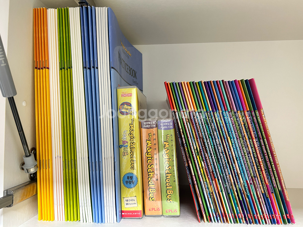 매직스쿨버스 원서. 워크북. dvd. cd. 각 30권씩 세트입니다. 매직스쿨버스 한글판 아이가 너무 재미있게 봐서 원서도 샀는데 제가 엄마표 못시켜서 모셔만 두었어요. 새것 컨디션 책 내용은 당연 재미있고 워크북 구성이 너무너무 좋아요. 아래 링크 참고해주세요. 똑같은지는 모르겠지만 요런 과학내용들입니다. https://www.yes24.com/product/goods/2987909