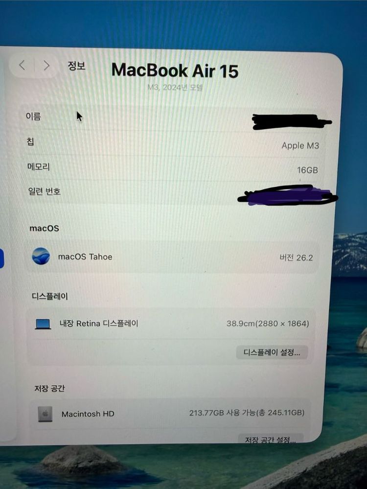 개인정보(거래정보)를 주고받는 행위는 사기에 노출될 수 있으므로 즉시 중고나라로 신고해 주세요맥북에어 M3 15인치 16GB RAM, 256SSD 모델 충전기는 생활기스 좀 있어요. 외관. 화면 깨끗합니다. 중고 전자제품 특성상 파손 우려 때문에 직거래해요- 박스 및 구성품은 모두 다 있어요. 잠실역 직거래 가능해요. (평일)