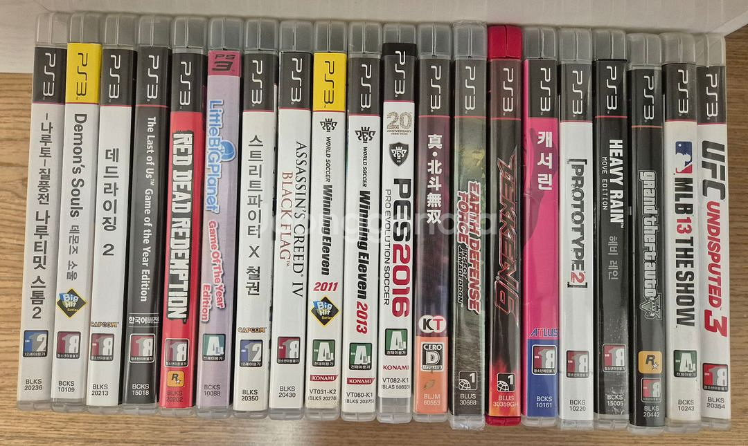 플스3(PS3) CD 20종 일괄 팝니다.(8만원) 일괄 판매만 합니다. 나루티밋스톰2 데몬즈소울(메뉴얼없음) 데드라이징2 레드데드리뎀션(메뉴얼없음) 라스트오브어스 고티(메뉴얼없음) 리틀빅플레닛 스트리트파이터vs철권 어쌔신크리드4 위닝2011 위닝2013 위닝2016 진북두무쌍(일판) 지구방위군 미개봉(프로모션) 철권6(북미) 캐서린 프로토타입2 미개봉(프로모션) 헤비레인 GTA5(지도없음) MLB13더쇼 UFC언디스퓨티드3 직거래는 부산 명지국제신도시에서 거래 가능하고 우편거래 가능합니다.