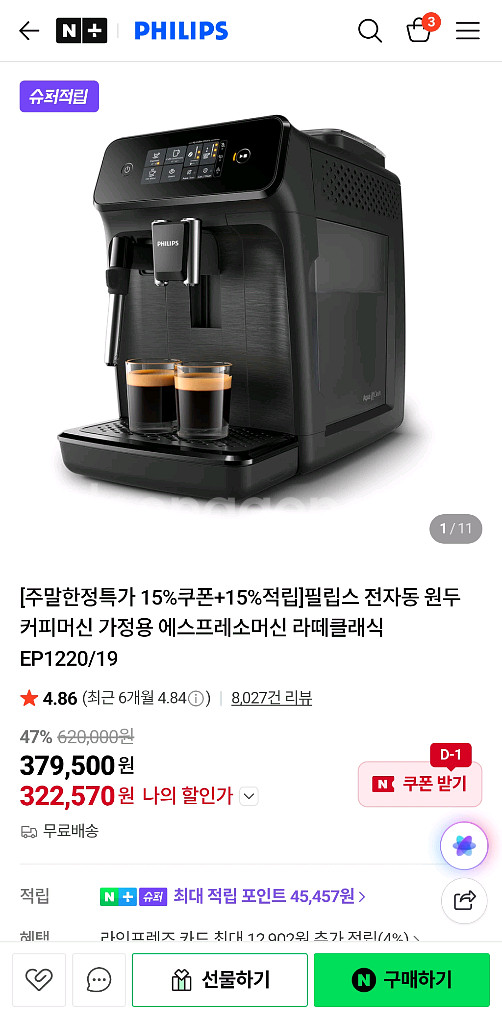 필립스 전자동 커피머신 미개봉EP1220/19
