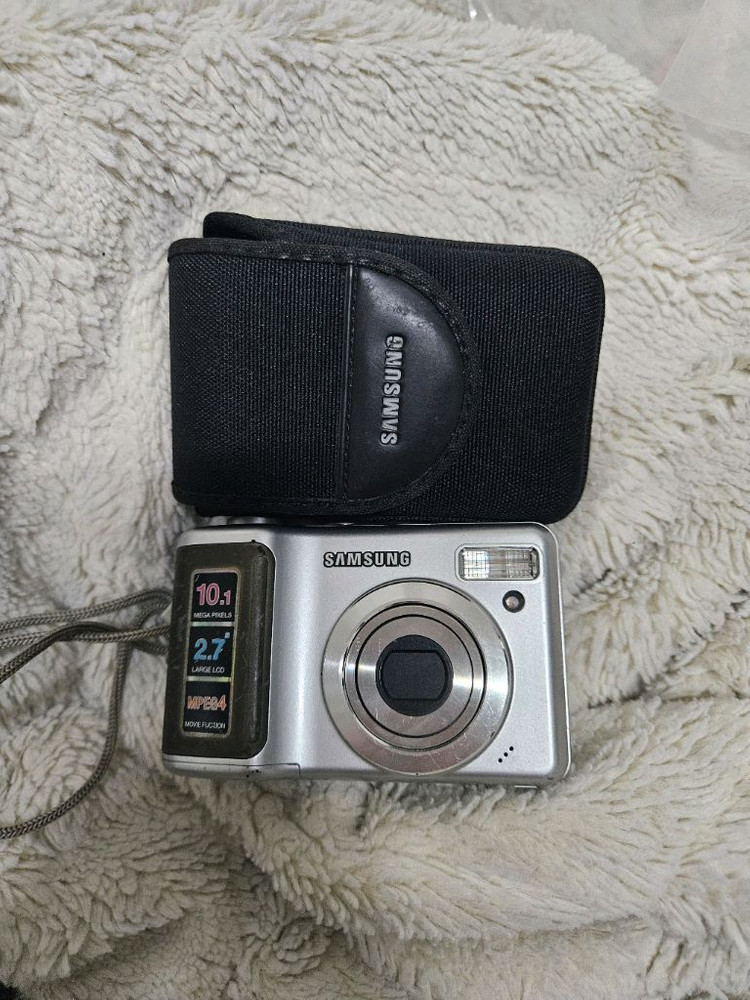 메모리 파우치 리더기 구성입니다. 정상작동 되며 사용감 사진과 같아요. 이미지 센서: 1/1.8인치 CCD, 유효 화소수 약 1,010만 화소. 렌즈: 광학 3배 줌 (35mm 환산 시 약 35~105mm), 밝기 F2.8~F5.1. 디스플레이: 2.7인치 TFT LCD (약 23만 화소). 감도(ISO): ISO 80 ~ 1600 지원 (일부 자료 ISO 1000). 저장 매체: SD/SDHC 카드 및 45MB 내장 메모리. 전원: AA 배터리 2알 사용으로 배터리 충전기 없이도 교체가 용이함.