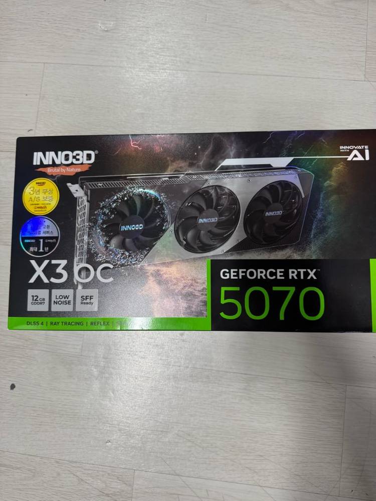 GeForce RTX 5070 그래픽카드입니다.미개봉 박스 상태로 보관되어 있어요. 게이밍이나 작업용으로 성능 좋은 제품입니다. 시리얼상 25.08 보증시작
