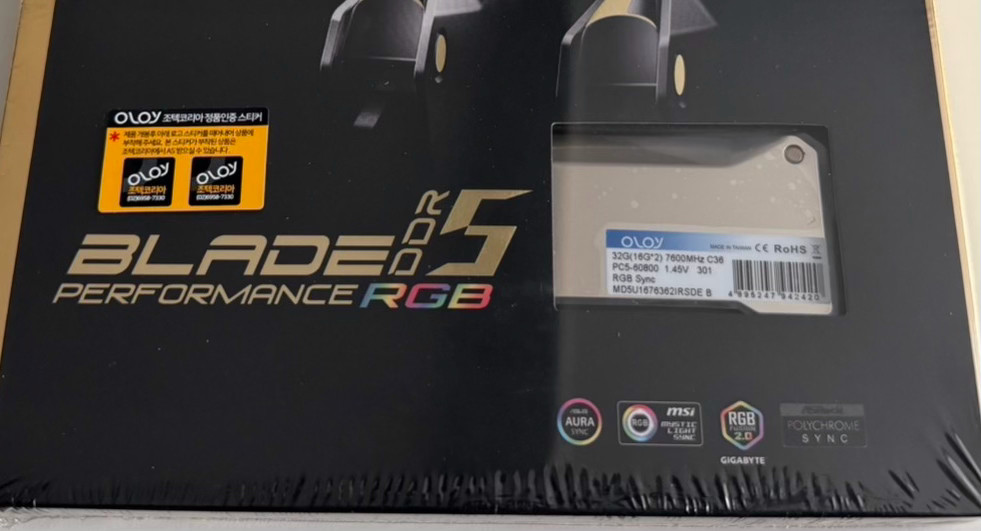개인정보(거래정보)를 주고받는 행위는 사기에 노출될 수 있으므로 즉시 중고나라로 신고해 주세요OLOy DDR5-7600 CL36 BLADE RGB 32GB(16x2) 램입니다. 미개봉 새상품 조탁 정품