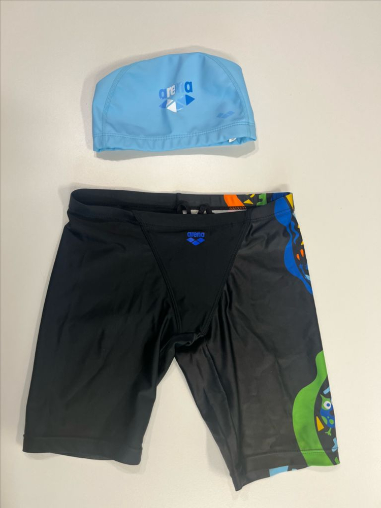남아용 4부 바지 수영복과 수모 세트예요. 수영복은 블랙 베이스에 컬러풀한 패턴이 들어가 있고, 수모는 연한 파란색으로 깔끔해요. 상태 양호한 중고 제품입니다. 75사이즈 (통통 남아 초3쯤 입었어요) 택에 이름적은부분은 잘라냈어요. 택포 16,000원 예민하신 맘님은 신중한 거래 부탁드리며 반품 환불 불가 합니다 편의점택배 이용 예정이며 박스 구해야하니 배송은 넉넉히 기다려 주실분만 거래해주세요