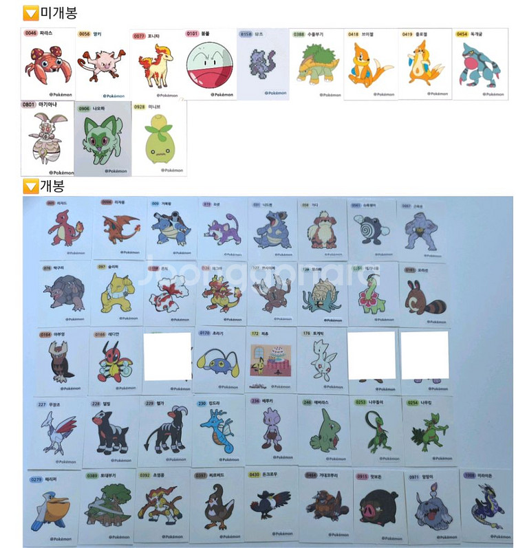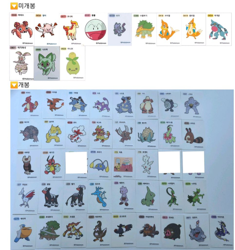 🔥구매하실 포켓몬 1개 이상 톡주시면 가격 말씀드릴게요 ex)미라이돈,리자몽 얼마예요? 🔥일괄구매시 50000원 [미개봉:일반11장+픽셀1장 개봉:일반37장+발렌타인1장] 🎀택배 반값택배+2000 일반택배+4000 🎀직거래장소 아리따움 효성점 앞 (인천 계양구 안남로 558) https://naver.me/5K5rNBIj 🎀운영플랫폼 당근/번개장터(수수료포함가)/중고나라 🎀교환/환불 불가 🎀본 게시물 삭제 전까지 상시 구매 가능 *미개봉씰은 전부 4자리 번호이며 첨부한 사진 그대로의 포즈입니다 같은 포켓몬이라도 포즈가 다르거나 좌우반전인 띠부씰이 공식적으로 존재하니 잘 확인해주세요. ~ㄱㄴㄷ순 정렬~ [미개봉] 나오하 독개굴 마기아나 망키 미니브 뮤츠(픽셀) 붐볼 브이젤 수풀부기 파라스 포니타 플로젤 [개봉] 가디 거대코뿌리 거북왕 근육몬 꼬리선 꼬렛 나무돌이 나무킹 니드퀸 돈크로우 델빌 딱구리 리자드 리자몽 레디안 마그마 맛보돈 망망이 무장조 미라이돈 메가니움 배루키 쁘사이저 슈륙챙이 슬리퍼 암스타 야부엉 애버라스 찌르버드 초라기 초염몽 콘치 킹드라 토게틱 토대부기 피츄(발렌타인) 패리퍼 헬가