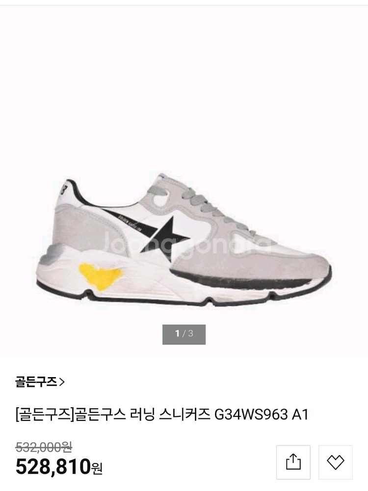 개인정보(거래정보)를 주고받는 행위는 사기에 노출될 수 있으므로 즉시 중고나라로 신고해 주세요브랜드:골든구스 러닝솔 사이즈:280-285(44) 색상:사진참고 상태:좋아요 하자:솔직히 뒷굽쪽에 약간에 헤짐 있어서 착한가격에 올립니다 세탁:오염없어요 굽높이:5-6 Made in:ltaly 착한가격에 올립니다 가격:15만원