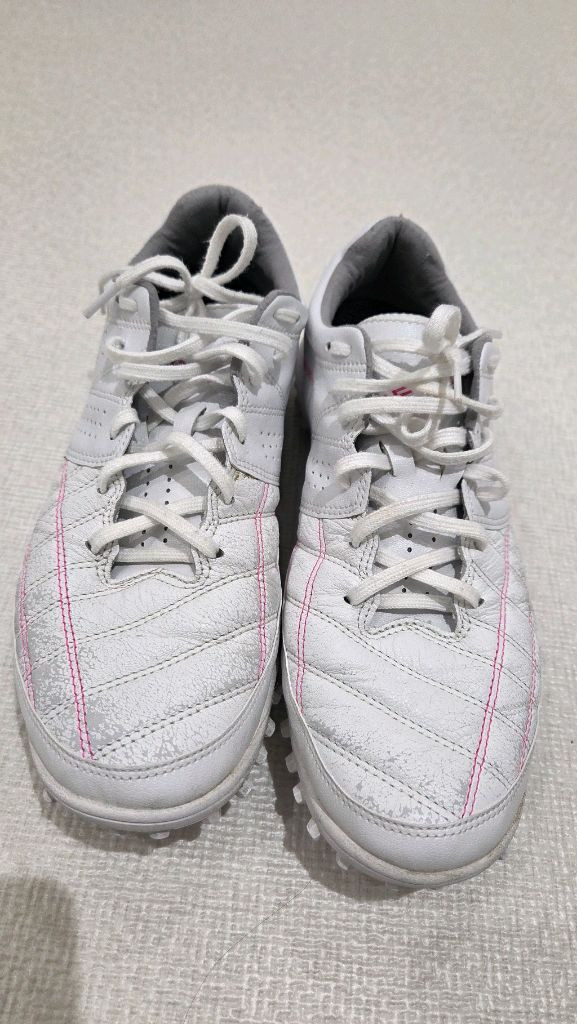 데피니브 풋살화입니다. 사이즈는 275mm... 실착 2회...1번은 흙구장... 사이즈가 작아서 판매합니다. 유명한 축구유튜브 jk아트사커가 제작한 풋살화입니다 캥거루 가죽이며 밑창에 카본이 덧데여져 있어서 풋살화지만 축구경기장에서도 최곱니다. 특히 풋살화의 단점인 밑창이 약해 슛팅이나 롱킥이 약해지는 부분이 없습니다. 중고거래를 위해 세쳑하다가 앞코부분등이 도색이 벗겨졌지만 가죽이 상하거나 기능상에 문제는 전혀 없습니다. 직거래시 양산 물금쪽입니다. 택배거래시 반품불가 선입금이며 착불입니다.