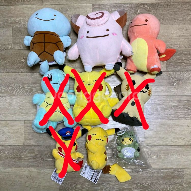 맨 윗줄: 변신메타몽 꼬북이, 삐삐, 파이리 일괄 5만원 중간줄: ❌️ 맨 밑줄: 잠자는 피카츄 2만원 대타출동 피카츄 18만원 입니다 대타출동 피카츄는 일본 정품인형으로 이제 못구하는뿐더러 아주 비싼값 나가는 정품 인형 입니다. 택도 달려있고 미개봉이라 희소성 값 포함이에요 비싸도 덕후분들은 찾는분이 다 계시더라구요 일괄 25만원 인데 쿨거 하시면 20에 다 드릴게요 대박 할인 입니다