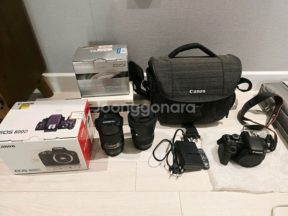 1. 캐논 800d 바디 정품이고 사용은 많이 안했습니다. 사진대로 상태 양호하고 기능정상입니다 구성품은 바디, 충전기, 배터리 2개, 가방, 스트랩 구성입니다 2. 캐논마운트 시그마 18-35mmf1.8DC 일명 ufo 렌즈 입니다. 상태 좋고 이상없이 작동 잘됩니다. 경통흘러내림 없습니다. 박스. 후드 포함입니다. 3.탐론 16-300mm F3.5-6.3 Di II VC PZD MACRO 캐논 마운트 팝니다. 박스, 후드, 기본 필터 포함입니다. 여행용 렌즈중에 최고라는 렌즈 입니다. 여행 및 초기 입문시 렌즈 하나로 광각에서 망원까지 편합니다. 일괄 115만원에 판매 합니다. 직거래는 파주 운정입니다.