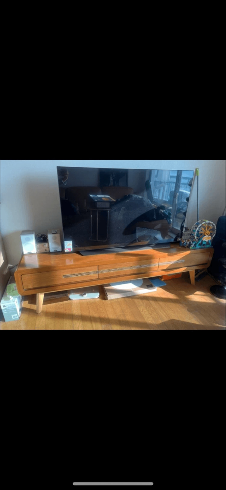 개인정보(거래정보)를 주고받는 행위는 사기에 노출될 수 있으므로 즉시 중고나라로 신고해 주세요깔끔한 디자인의 원목 TV장이에요. 서랍과 수납공간이 있어서 실용적이고, 전체적으로 스크래치없이 없이 상태 좋습니다. 원목 전문 가구점에서 산거라 튼튼한 진짜 원목입니다. 4/3일 이사 전까지 올려둘게요. 편하게 연락 주세요!