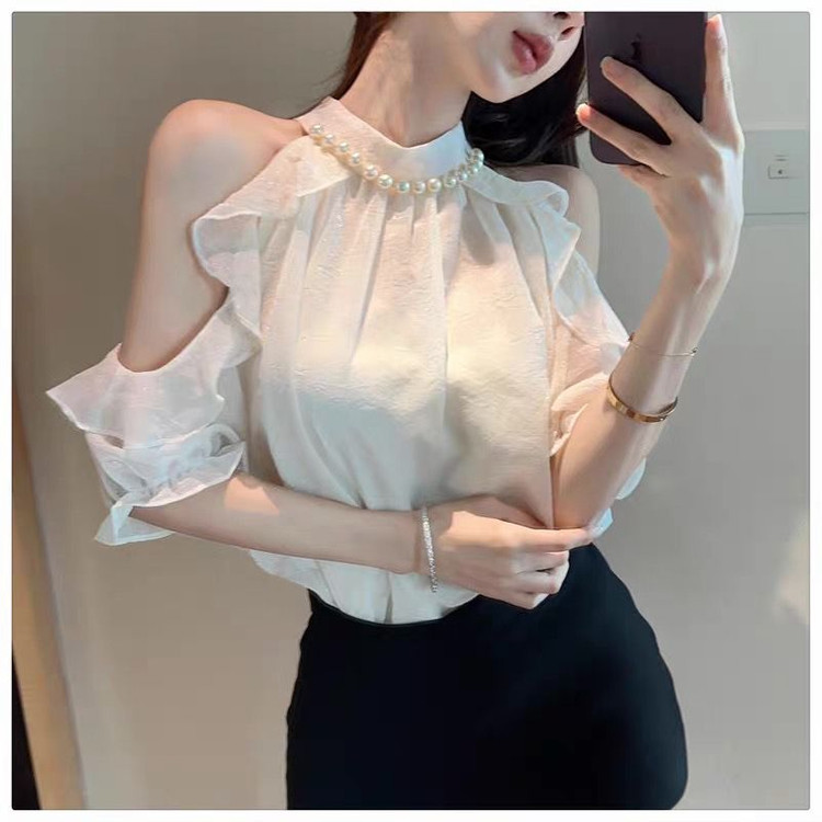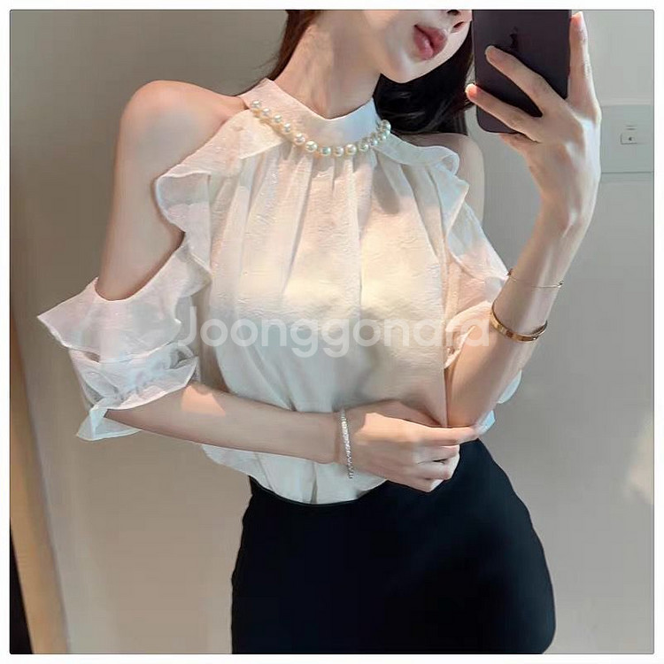 진주 목걸이 오프숄더 블라우스
