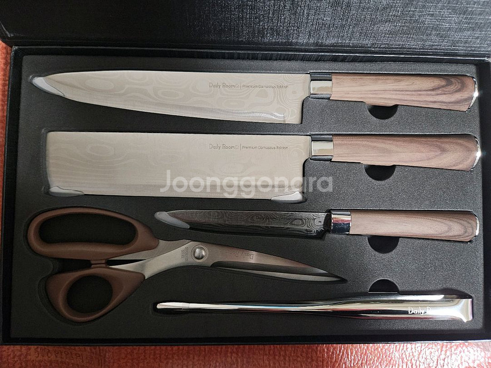 개인정보(거래정보)를 주고받는 행위는 사기에 노출될 수 있으므로 즉시 중고나라로 신고해 주세요데일리룸 에센 다마스커스 칼 세트입니다 칼 3개, 가위 1개, 칼갈이 1개 포함되어 있습니다 새상품입니다