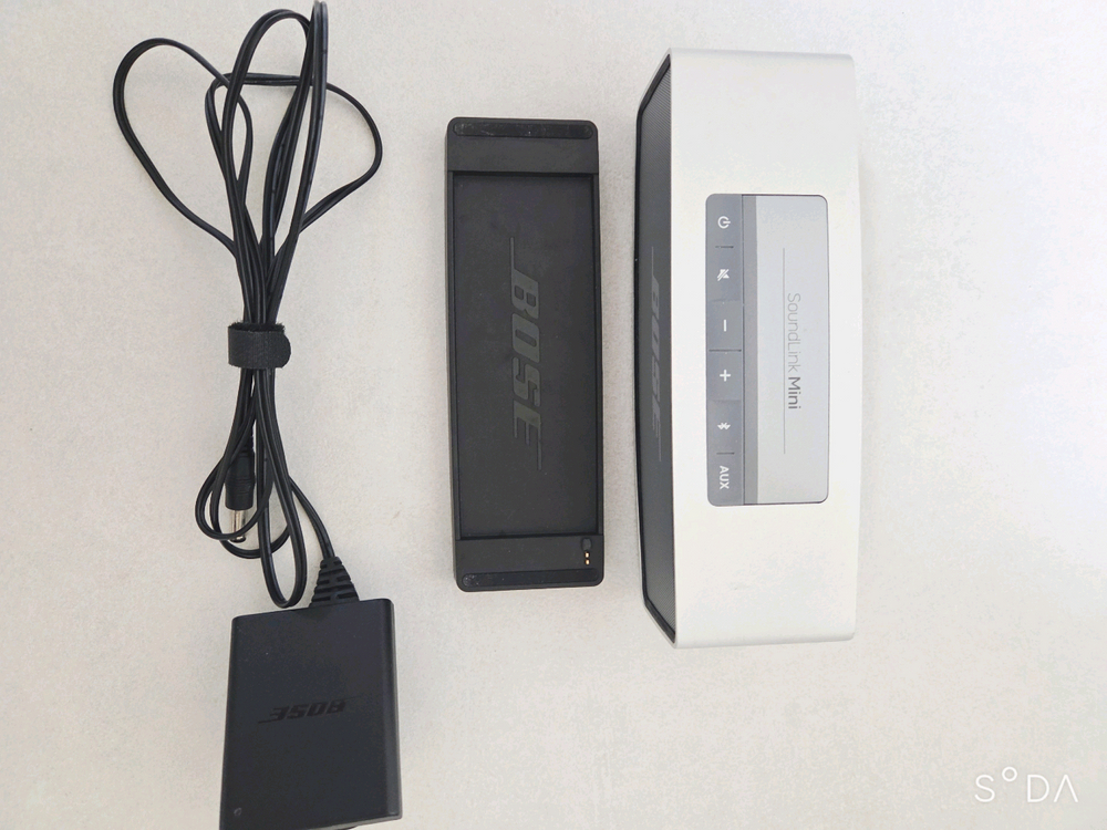 보스 사운드링크 미니 블루투스 휴대용 스피커 블루투스 스피커/ 내장배터리/ 블루투스/ 입출력: AUX/ 다중연결: 멀티페어링/ 배터리잔량표시/ 사용시간: 7시간/무게: 670g/ 패시브라디에이터/ 고효율트랜지스터/ 알루미늄바디/ 충전용거치대/ 크기:180x51x58mm/ 최대6대기기페어링지원 / 출시가: 299,000원 정상작동 잘 됨.