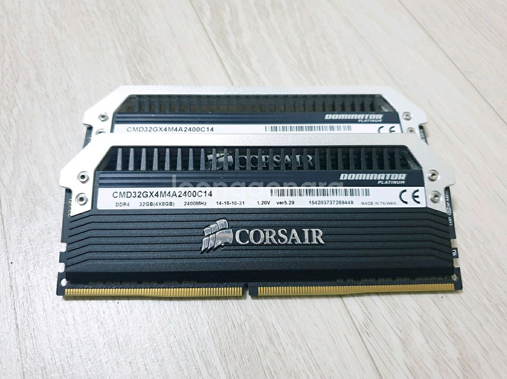 커세어 DDR4 도미네이터 8GBx2 (16GB) 램 ■ 커세어 도미네이터라서 벤저스보다 더 두꺼운 방열판과 더 두꺼운 PCB가 적용된 제품 입니다 ■ 구형 인텔 시스템에 적합합니다 (2400MHz인 대신에 램타이밍이 CL14로 매우 빠름) ■ XMP 프로필이 2개가 있어서 2666MHz에 CL16도 적용 가능합니다 ■ 원래 쿼드킷(8GBx4) 제품이라서 제품명엔 32GB로 적혀있는데 8GB 2개만 있어서 16GB 입니다 ■ 제품에 아무 문제 없고 TM5 테스트도 다 통과한 정상품 입니다 안전거래, 택배선입금, 직거래(오시는 조건) 다 가능함