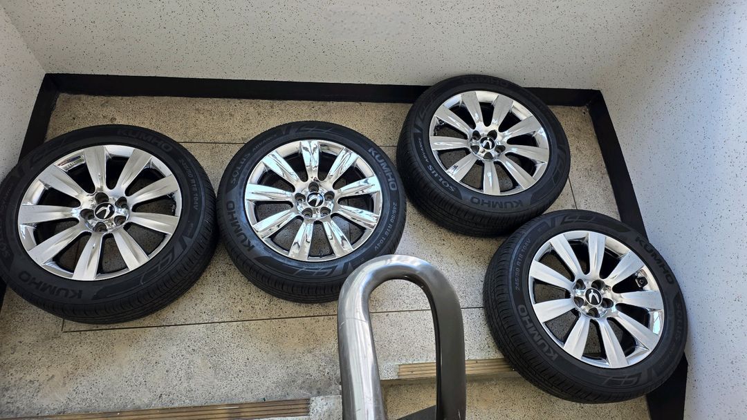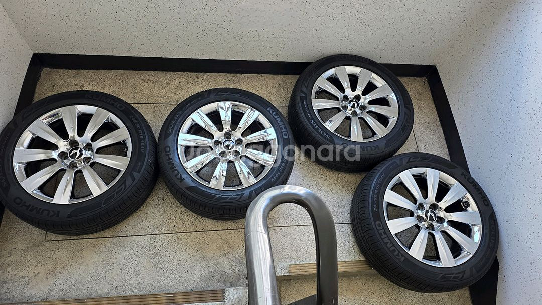 뉴에쿠스 vi/순정18인치/크롬휠, 타이어/중고 4개/교환(대품)가능/개인/팝니다. 1. 휠~ 3년전에 신품4개 구매함. 광빨 죽입니다. 휠은 역시 크롬휠이죠. 지금 신품휠이 개당 39만원 전후 입니다. 2. 타이어 ~ 금호타이어/솔루스 어드밴스 245 50 18/타이어주기 4개(25년17주), 5~6만키로 주행가능 3. tpms~ 4개 정상 4. 교환(대품)가능 ~ 뉴에쿠스 vi에 맞는 휠, 타이어만 가능합니다. 썩은거 주세요. 5. 금액, 직거래 지역, 공임, 택배등등 협의가능 ~ 대품조건(59만원), 대품없는조건(79만원) 예민하신분은 연락x, 구사육팔 구사구오(전북 익산)