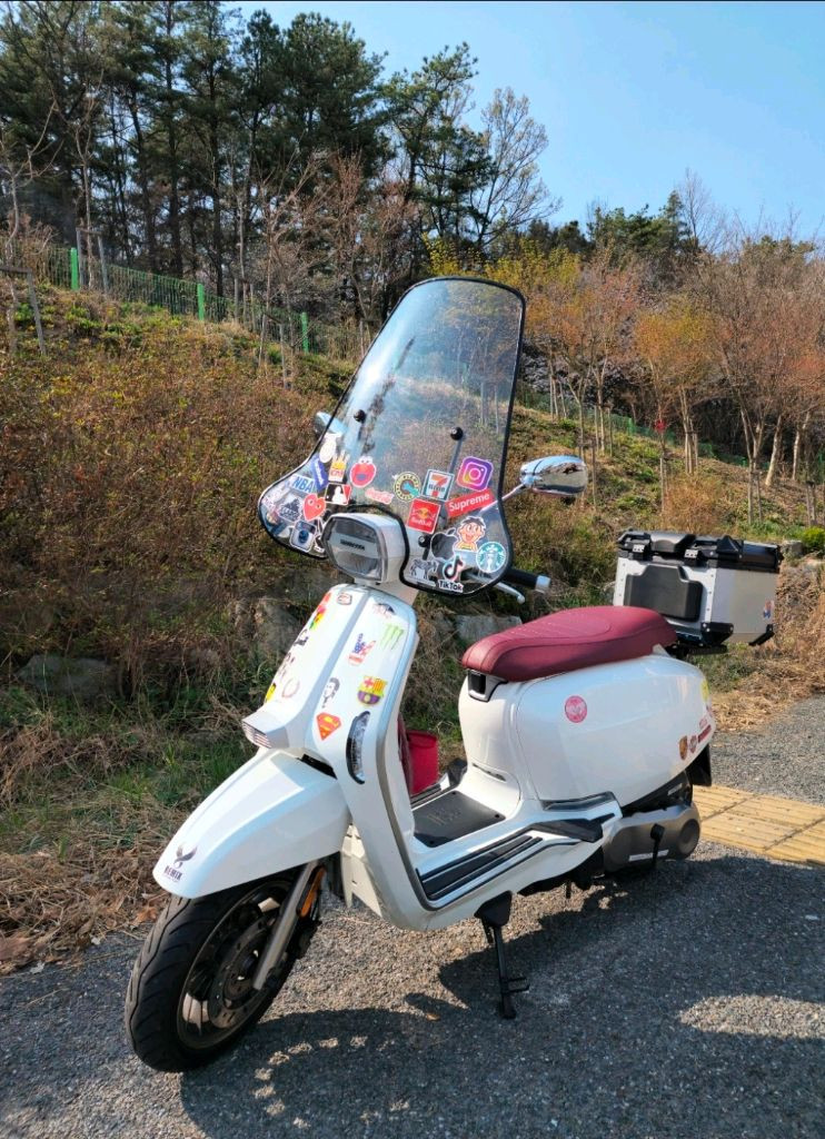 2020년식 이탈리아 람브레타 스쿠터 판매합니다 키로수 4700정도며 집근처 마실용으로 탔습니다~ 슬립은 없지만 주차장에서 애들이 건드려서 바닥말고 벽에 살짝 꿍이있었습니다. 작은 스크레치 있지만 티는 안나요 한발시동 걸리며, 엔진음 들어보시면 이탈리아제 타는 의미가 있을거에요~ 251029 정기검사 이상없이 통과했습니다. 260310 배터리 교체했습니다~ 지금은 윈드스크린 테두리 흰색으로 변경했습니다 사진상 박스 포함 구매시 설명서 및 키 2개 박스 포함입니다 당연히 스티커는 뗄수있습니다