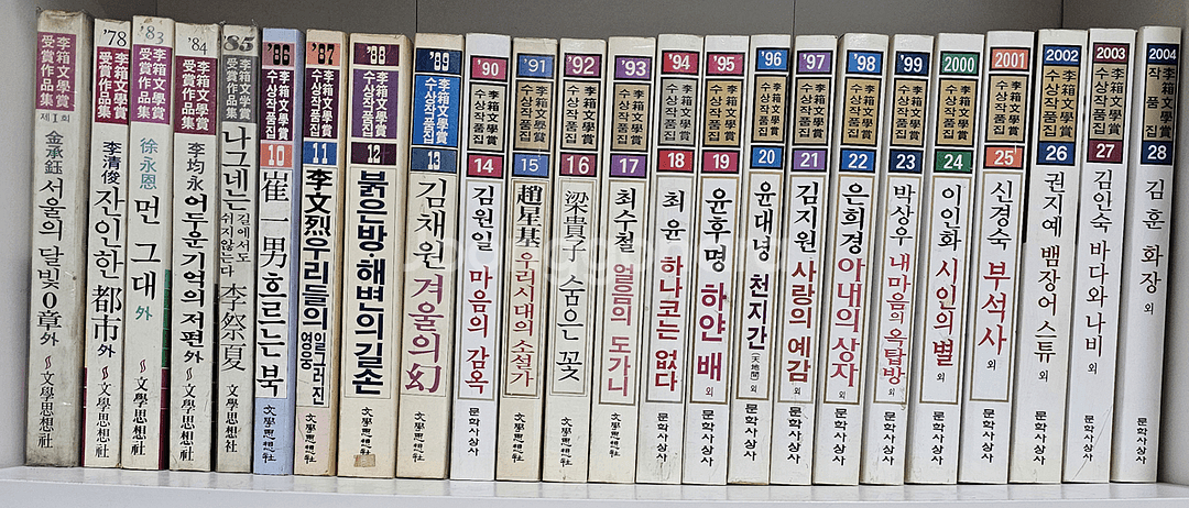 개인정보(거래정보)를 주고받는 행위는 사기에 노출될 수 있으므로 즉시 중고나라로 신고해 주세요이상문학상 작품집 시리즈 1회(1977년)부터 최근작까지 모은것입니다. 총 39권 판매 합니다 오래된 책이라 사용감은 있습니다.