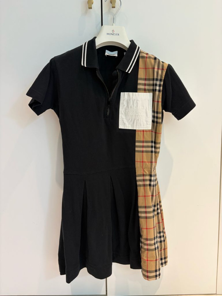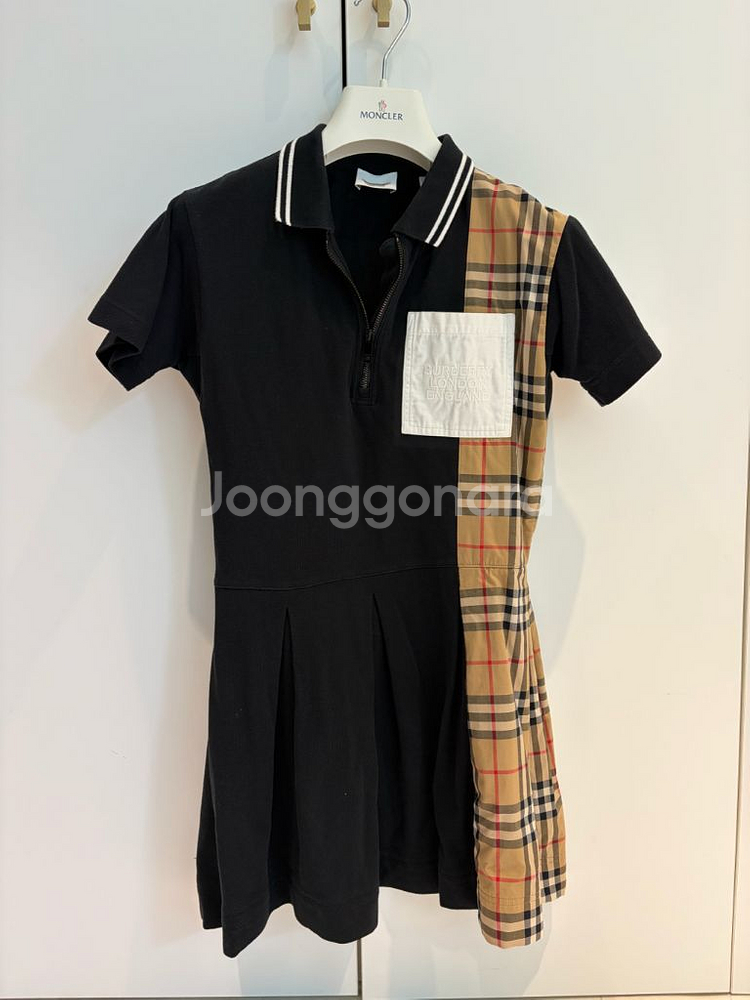 버버리 키즈 체크 배색 폴로 원피스예요 5회정도 입었습니다. 흰포켓, 허리선 아래부분 살짝 오염있습니다. (사진첨부) 사이즈 10Y