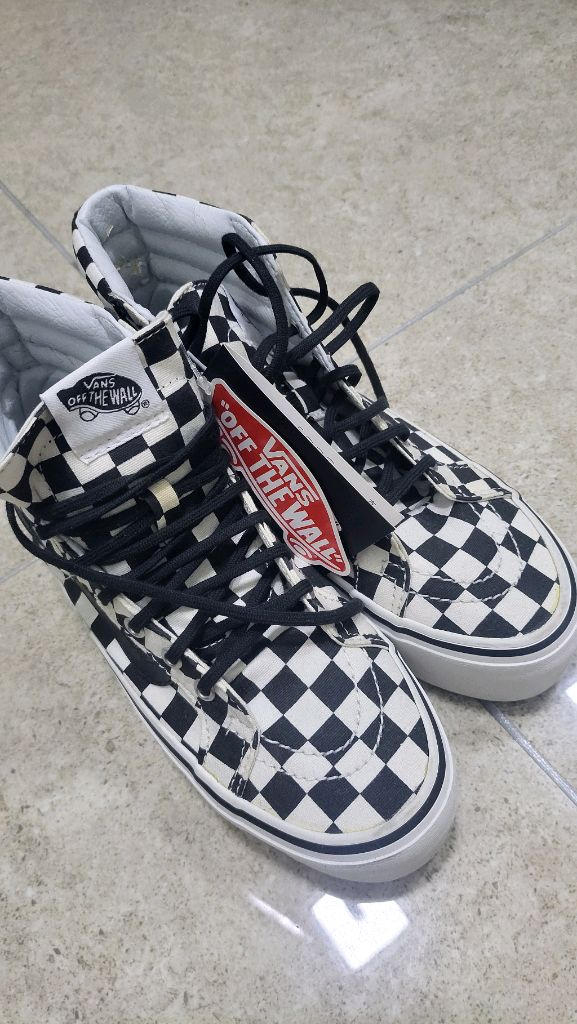 개인정보(거래정보)를 주고받는 행위는 사기에 노출될 수 있으므로 즉시 중고나라로 신고해 주세요반스 체커보드 하이탑 225사이즈입니다. 택 달린 새상품이고, 실착 한 번도 안 했습니다. 유행 안 타는 디자인이라 하나쯤 소장하시면 좋을 것 같아요. 굽 4cm 사놓고 안신었네요 신발정리중입니다