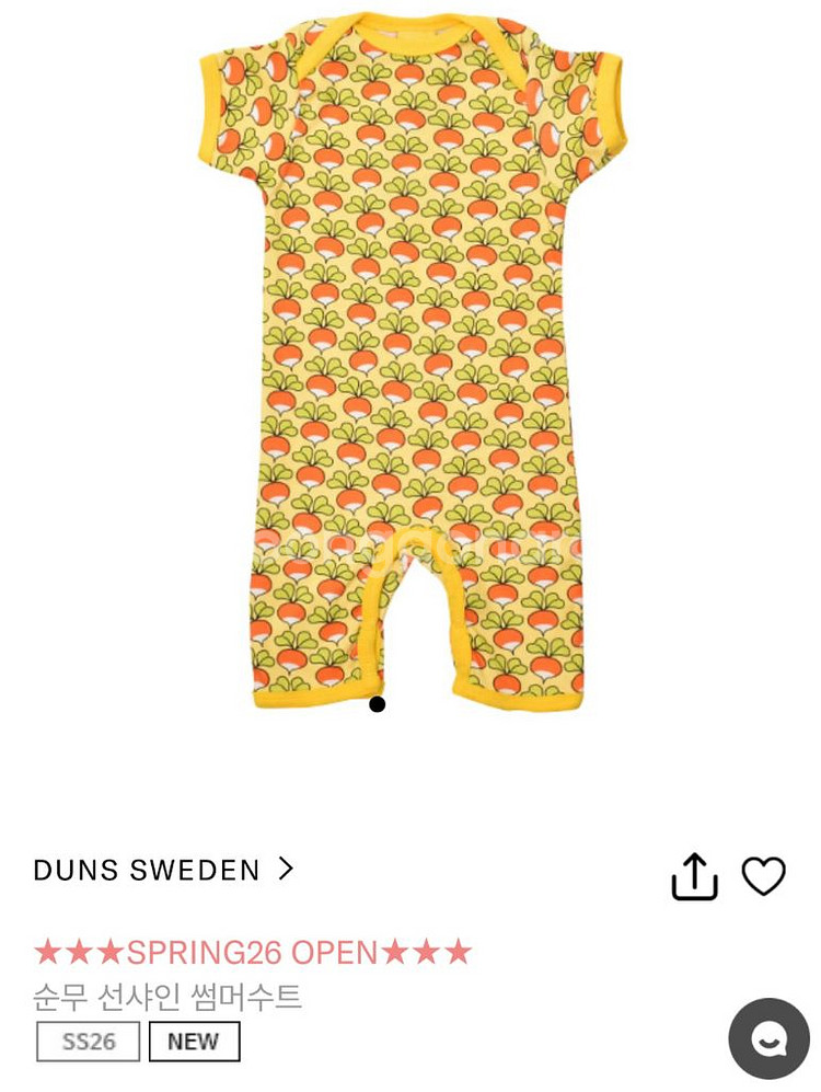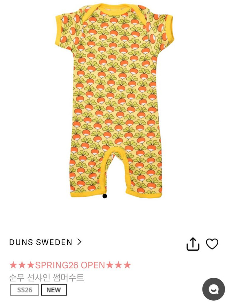 개인정보(거래정보)를 주고받는 행위는 사기에 노출될 수 있으므로 즉시 중고나라로 신고해 주세요2026 SS시즌 던스 노란순무 선샤인 썸머수트 써머수트 입니다. 68 사이즈 새상품 판매합니다.