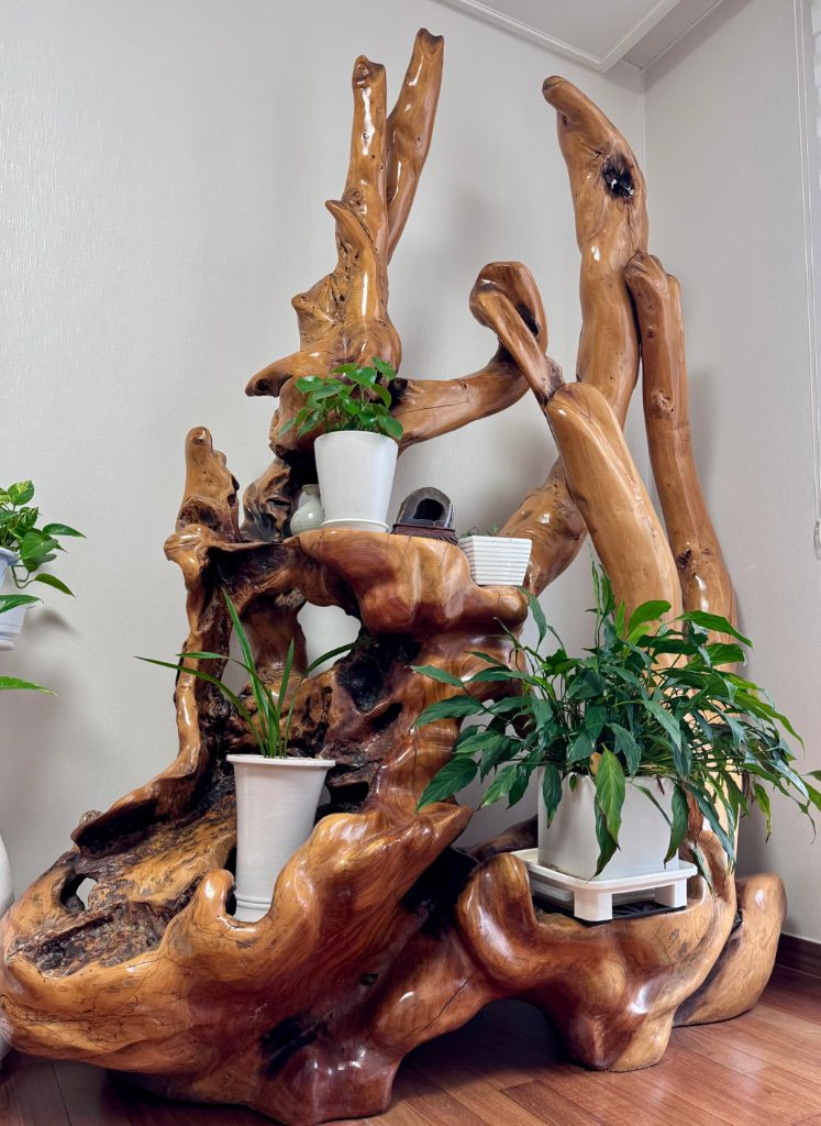 독특한 디자인의 느티나무원목 뿌리 조형물입니다 화분 받침대로 사용하면 예쁜 인테리어 효과를 낼 수 있습니다 자연스러운 나무 질감이 살아있어 더욱 멋스럽습니다 느티나무 괴목 화분다이, 장식장, 테이블입니다 예전에 대전 리베라 라운지에 전시도 했던 괴목입니다! 50년 전에 구매해서 당시에 몇백년된 느티나무입니다! 관리도 잘되어있어서 실제로 보면 더 고급스러워요🖤 - 느티나무 괴목 화분다이 - 느티나무 괴목 장식장 - 느티나무 괴목 테이블 - 느티나무 괴목 3단 장식장 2개 세트가격이고 개별로 구매도 가능합니다-! 가격 제안받습니다-! 직접 가지고 가시거나 화물차부르셔야합니다ㅠㅠ