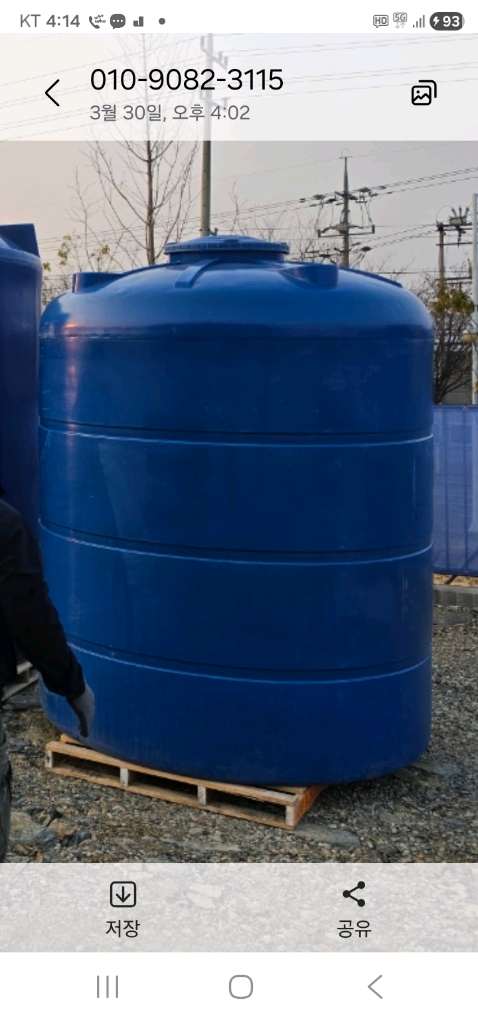 개인정보(거래정보)를 주고받는 행위는 사기에 노출될 수 있으므로 즉시 중고나라로 신고해 주세요■ 중고물탱크 3대 매각 ■ ㅡ 금년 3월 신제품 구입 ㅡ 5 톤 물탱크 2대 × 35 만 = 70 만 10톤 물탱크 1대 × 70 만 = 70 만 ■ 3대 일괄 매각희망. 세척후 사용요망 ■ 7740.6763