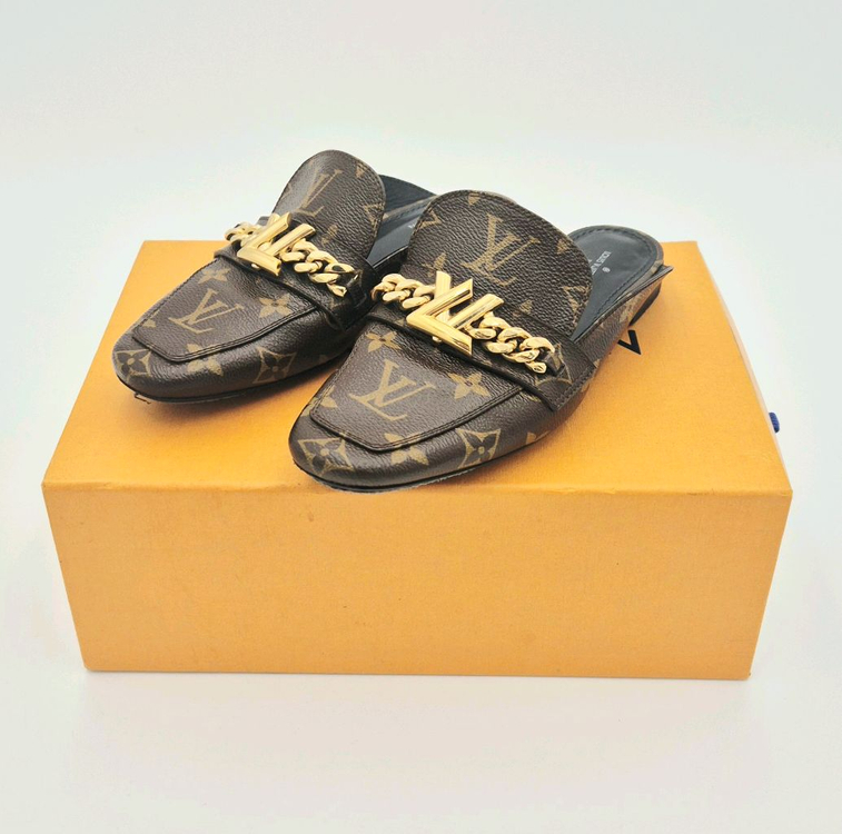 [중고명품셀렉트]루이비통 어퍼케이스 여성 뮬 슬리 루이비통의 아이코닉한 모노그램 캔버스 소재로 제작된 뮬 슬리퍼입니다. 전면에 골드톤 LV 로고와 체인 디테일이 더해져 클래식하면서도 세련된 무드를 연출합니다. 슬립온 형태로 착용이 간편하며, 데일리부터 휴양지 스타일까지 다양하게 활용 가능한 아이템입니다. ■브랜드: 루이비통 (LOUIS VUITTON) ■소재: 모노그램 코팅 캔버스 / 가죽 인솔 ■컬러: 브라운 모노그램 / 골드 하드웨어 ■사이즈: 36 (약 230mm) ■제조국: 이탈리아 ■사이즈: 36 ■구성품: 케이스, 한국명품감정협회 감정서 ■상품등급: A 바디: 뒷굽 마모, 자연스러운 사용감 내부: 잔스크레치, 자연스러운 사용감 N급 (새상품 / NEW) 새상품, 미사용품으로 사용하지 않음 / 스크래치, 얼룩, 마모 없음 S급 (새상품급 / Excellent) 개봉만 했거나 사용감이 거의 없음/ 스크래치, 얼룩, 마모 거의 없음 A급 (양호 / Good) 사용감이 적음/ 미세 스크래치, 미세변색 등 흔적 있음 / 기능은 정상 작동, 외관 상태 양호 B급 (사용감있음 / Well worn) 눈에 띄는 사용감 있음 (스크래치, 변색, 마모) / 기능은 문제없음 /실사용에 지장 없음 ** 모든 상품은 명품감정원 전문 감정사의 검수를 마친 정품만 판매합니다 ** 본 상품 구매시 명품감정사의 꼼꼼한 검수를 통해 발급되는 한국명품감정협회 감정소견서가 동시에 발급되며 발급된 소견서로 감정원 홈페이지에서 정품확인이 가능합니다.