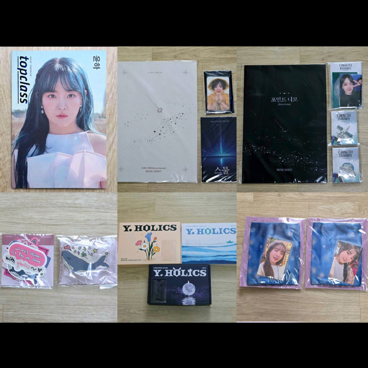 <공식 MD> - 7기 키트 (회원카드 제외) - 8기 키트 (회원카드 제외) - 9기 키트 (회원카드, 왁스 타블렛 제외) - 2023 에버라인 팝업스토어 : 스티커팩 / 그립톡 - 2024 스물콘 : 스페셜티켓 / 미니L홀더+포토카드4종 - 2025 그띠 앵콜콘: 퀘이사/포인트니모 뱃지 / 미니L홀더+포토카드4종 - 2026 빛나는겨울 소극장 : 1주차/4주차 입장포카+핫팩 파우치 - 톱클래스 topclass B형 2025.1월 잡지 (16페이지 수록) - 사건의 지평선 악보집 - 포인트 니모 악보집 윤하 공식 굿즈일괄 판매합니다 필요하시면 생일카페 굿즈, 비공식 굿즈, 콘서트 슬로건도 함께 넣어드려요