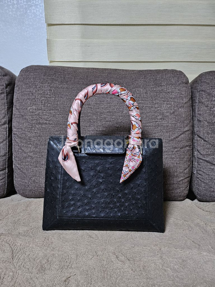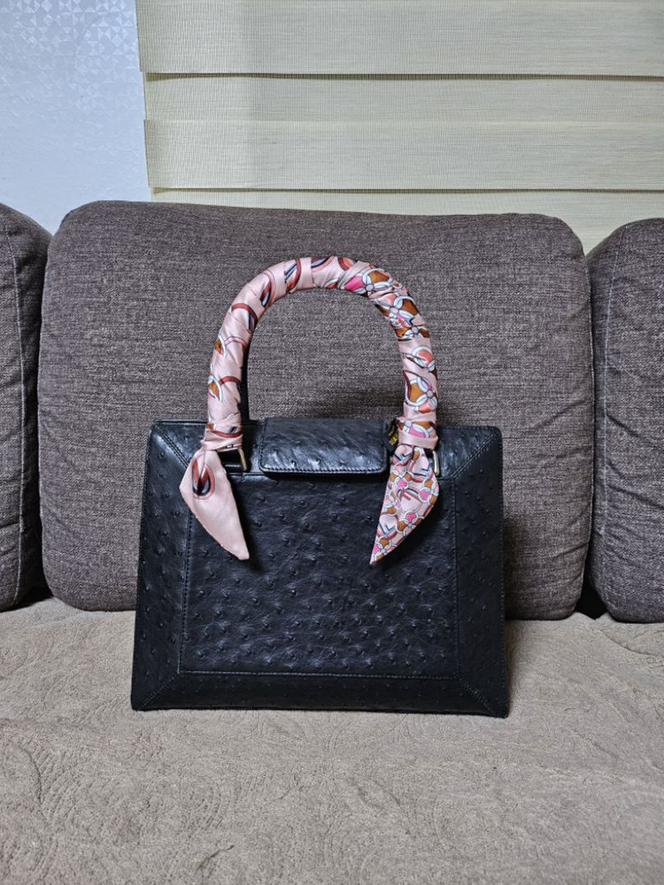 리얼 타조가죽에 고급진 백이에요 타조가죽은 고가 아이템이에요 딱 떨어지는 심플한 디쟌이라 어디든 매치하기 좋고 내부 공간 분리되어 잇어서 수납하기도 좋고 공간도 넉넉해요 시중에 흔한템 아니라 소장가치 잇고 나만의 백으로 겟하세요 사이즈 가로 30*27 세로 24 중고 거래 특성상 구입후 반품 환불 불가요