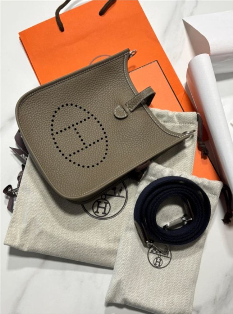 에르메스 미니 에블린 k각인 에토프 색상입니다. 25년 3월에 구매했고 제가 착용하려고 소장중이었는데 색깔이 겹쳐 판매합니다. 새상품입니다. 박스 리본 쇼핑백 풀세트 필요하시면 인보이스 개인정보 삭제 후 사본드립니다. 아시는 분들은 아시겠지만 에토프색상은 구하기 어려운 색상에 가방입니다 .