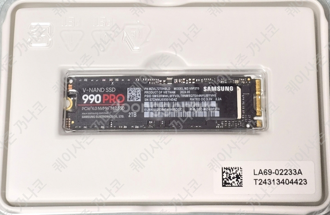 삼성 M.2 990Pro NVMe SSD 2TB팝니다. PCIe 4.0 지원으로 빠른 속도를 자랑하며, 2TB 용량으로 대용량 저장이 가능해요. 2024년도 구입