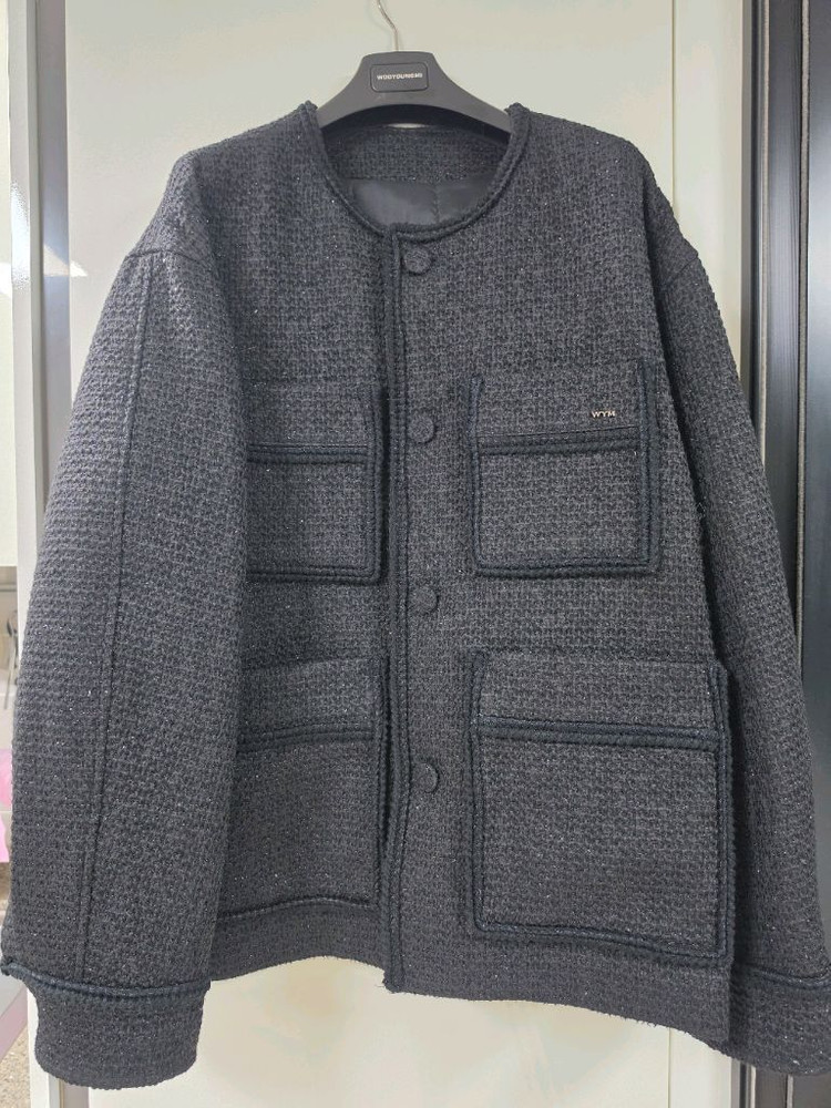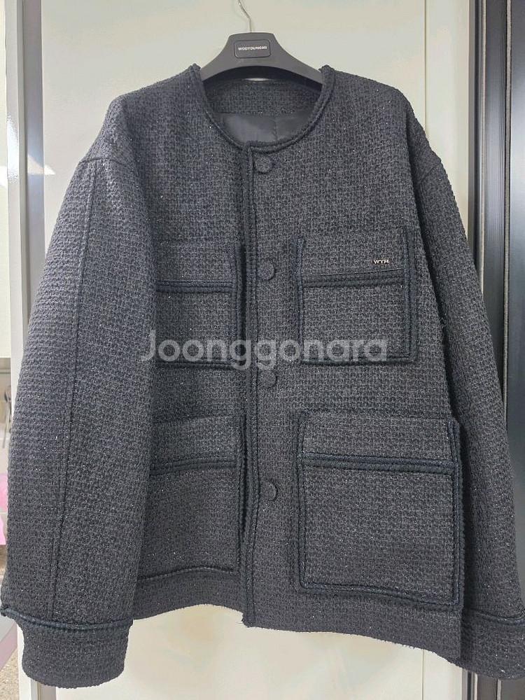 우영미 2024 블랙 글리터 트위드 자켓 48사이즈 단술 실착 2회 새것과 없는 S급 상태 초봄 및 가을 초겨울에 입기 좋은 예쁜 옷입니다.
