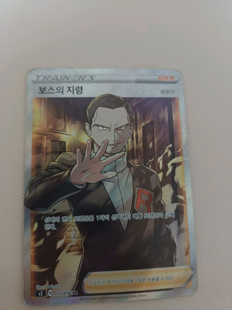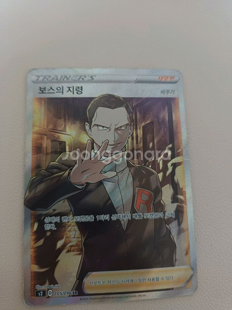 개인정보(거래정보)를 주고받는 행위는 사기에 노출될 수 있으므로 즉시 중고나라로 신고해 주세요포켓몬 TRAINER'S 카드 보스의 지령입니다. 골드/브론즈 스킨으로 홀로그램 효과가 있어요. 상태 양호한 중고 카드로 포켓몬 수집하시는 분께 추천드려요!