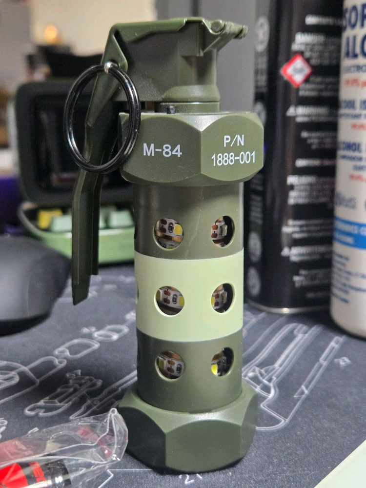 개인정보(거래정보)를 주고받는 행위는 사기에 노출될 수 있으므로 즉시 중고나라로 신고해 주세요m84 섬광수류탄 모형 레플리카 입니다 내부 led장치가 있어 핀을 뽑으면 3초뒤 점멸기능이 있고 위쪽 버튼을 누르면 조명용으로 사용이 가능합니다 123a배터리 2개 포함