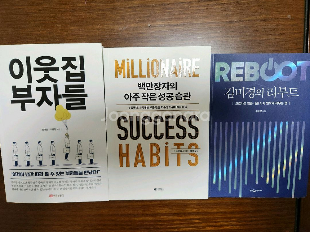 개인정보(거래정보)를 주고받는 행위는 사기에 노출될 수 있으므로 즉시 중고나라로 신고해 주세요이웃집 부자들, 백만장자의 아주 작은 성공 습관, 리부트가 포함된 성공서적 3권 세트예요. 책 상태는 양호하고 읽기에 문제없습니다. 성공에 관심 있으신 분께 추천해요!