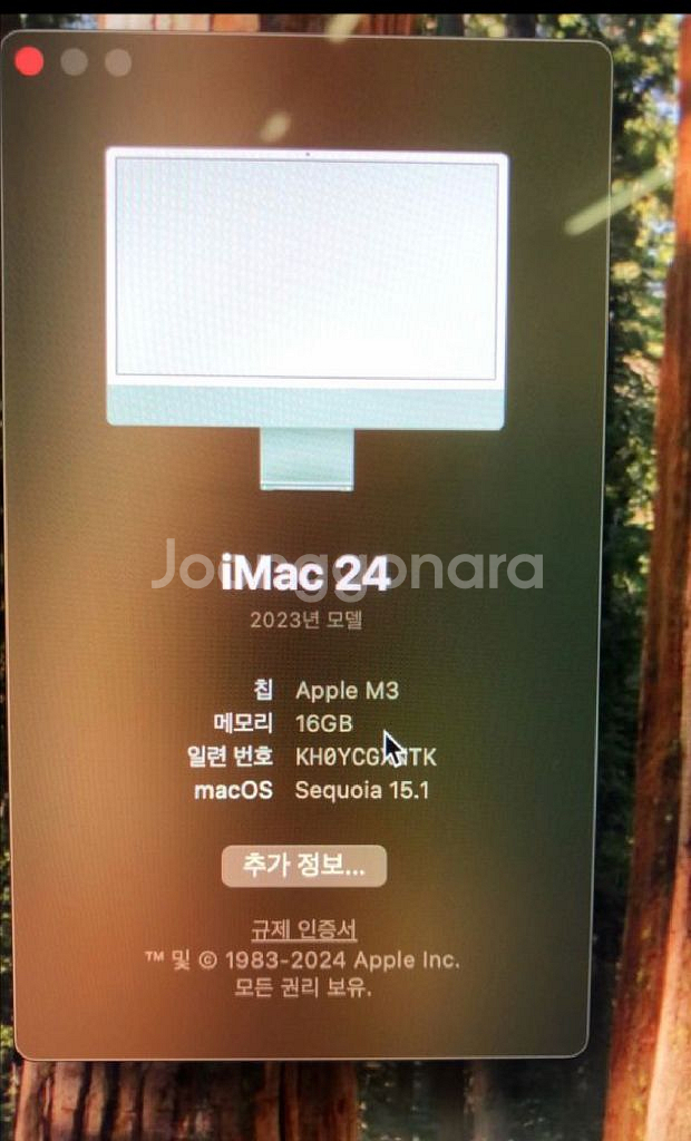 아이맥 M3 24, 그린 (M3 8코어 CPU, 8코어 GPU, ram 16g, 256GB) 24년 봄쯤 구입한 제품을 25년 11월에 중고로 거래 했습니다. 필요 없어져서 다시 판매합니다. 한군데에만 거치하고 사용한거라 매우 깨끗한 상태입니다. 박스 있고 키보드 마우스 정품 모두 포함입니다. 깨끗한 아이맥 원하시면 추천드립니다. 구매하시면 사테치 클램프 멀티 허브 제품도 드립니다.