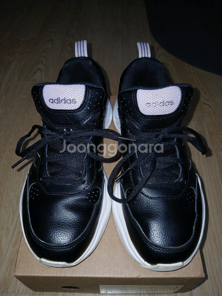 개인정보(거래정보)를 주고받는 행위는 사기에 노출될 수 있으므로 즉시 중고나라로 신고해 주세요아디다스 여성 블랙 컬러 운동화예요. 깨끗이 세탁완료 했어요. 바로 신으시면 좋아요. 본드접책부분이 매우 튼튼한 제품이예요 사이즈는 250mm입니다 실용적이고 스타일리시한 디자인으로 데일리 착용하기 좋아요.