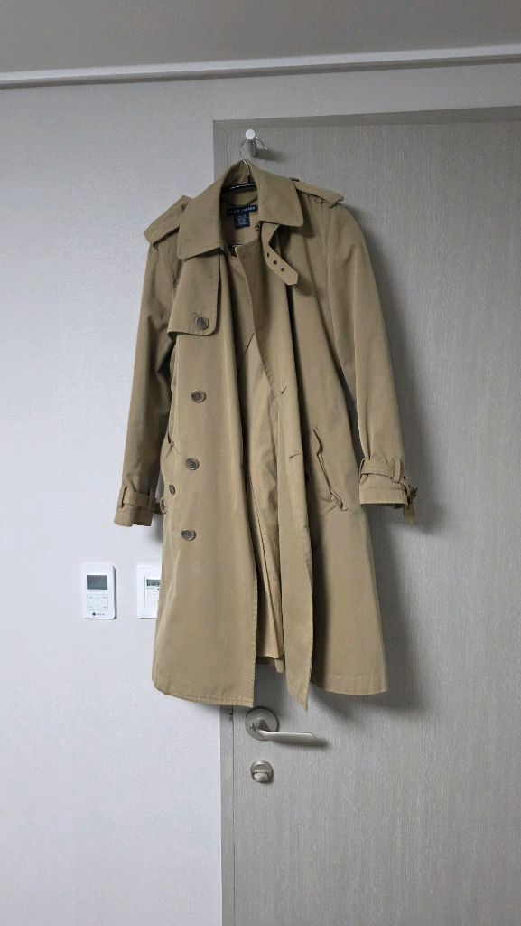 랄프로렌 트렌치 코트입니다 예전에 서울에서 당시 70만원정도준듯해요 질리지 않는 모델이죠 - 색상은 베이지색이며, 면 100% 소재입니다 - 사이즈는 2입니다 55사이즈정도되요 - 클래식한 디자인으로 어떤 스타일에도 잘 어울립니다 - 내구성이 뛰어나 오랫동안 입을 수 있습니다 - 세련된 핏으로 멋스러운 연출이 가능합니다 약간오염이있지만 단추연결하면안보임 감안하고 판매 헤지거나그런곳 없내요 거의안입어서 내놓아요 클래식한 트렌치코트예요. 베이지 컬러로 어떤 스타일링에도 잘 어울리고, 전체적으로 깔끔한 상태입니다. 실용적이면서도 세련된 디자인이라 오래 입기 좋아요.