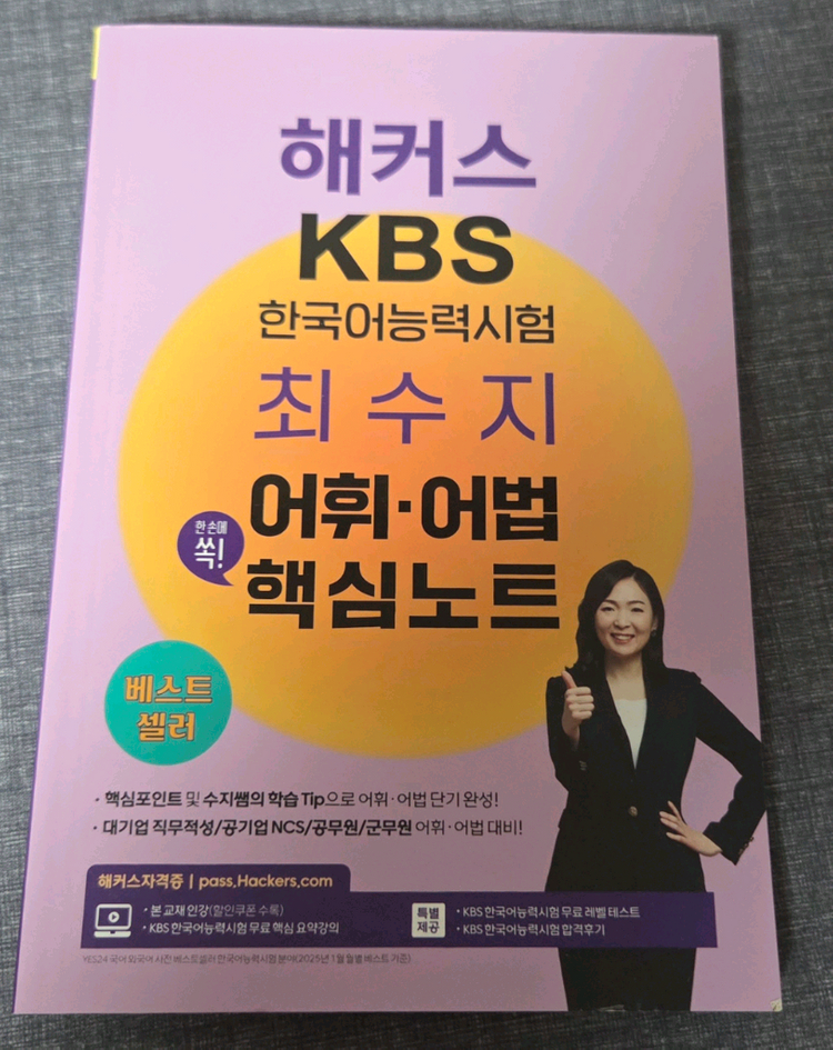 (새 책)(58% 할인) 해커스 KBS 한국어능력시험 최수지 어법 어휘 핵심노트 1. 책이름 : 해커스 KBS 한국어능력시험 최수지 어법 어휘 핵심노트 2. 상태 : 새 책 3. 가격 : 정가 11,900원 판매가 5,000원 (편의점 반값택배) +2000 (일반 택배) +4000