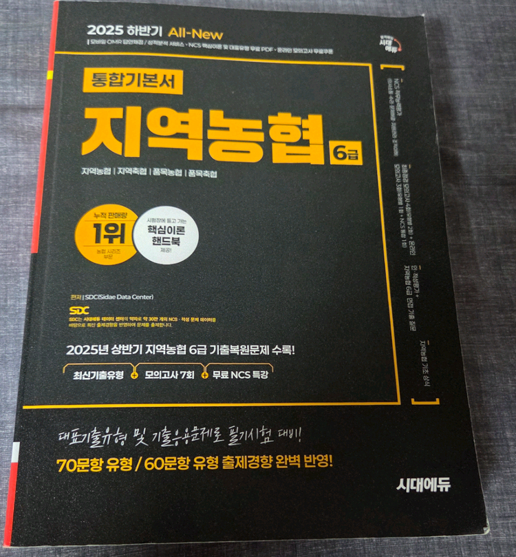 (새책)(50%할인) 시대에듀 통합기본서 지역농협 6급 1. 책이름 : 시대에듀 통합기본서 지역농협 6급 2. 상태 : 새 책 3. 가격 : 정가 26,000원 판매가 13,000원 (편의점 반값택배) +2000 (일반 택배) + 4000
