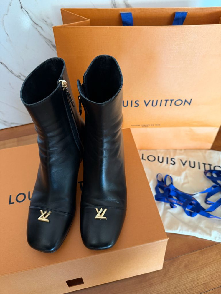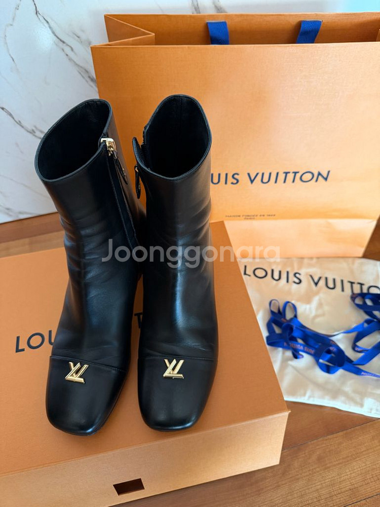 매끄러운 실루엣과 유연한 착화감을 선사하는 램스킨 소재 의 스윙 앵클 부츠. 아이코닉한 트위스트 백의 클래스프에 서 영감을 받은 톤온톤 LV 트 위스트 액세서리를 미니멀한 상단 부분에 장식한 디자인. Y 모양으로 잘 라낸 부분의 안 쪽을 대조적인 금속 소재로 강조한 중간 높이의 블록 힐. • 블랙 • 램스킨 • 시그니처 하드웨어 • 가죽 겉창 • 5.5cm / 2.2인치 힐 • 제조자: 루이비통 • 수입판매원: 루이비통코리아(유) • 제조국: 이태리 구입후 딱 1번 착용했어요 앞코 살짝 스크래치있어 100이나 넘게 싸게 내놔요ㅜT 정품입니다