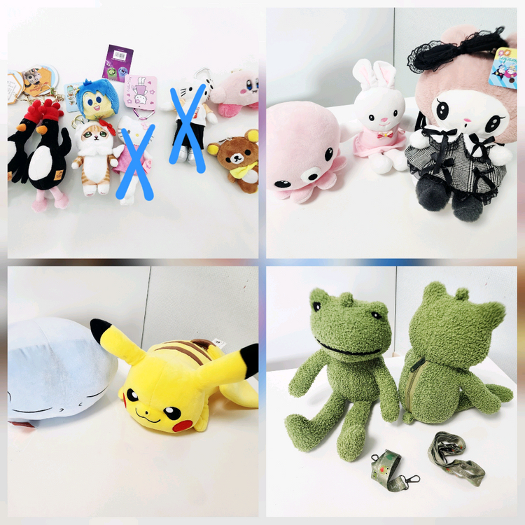 미니 인형 키링 일괄 4,000원 개구리인형 2종 7,000원 토끼, 산리오 인형 등 3종 7,000원 피카츄 인형 등 2종 5,000원 택 부착된 것도 있고 택 없는 것도 있습니다 ❤️ 택배비 미포함, 타제품과 함께 구매시 네고 가능