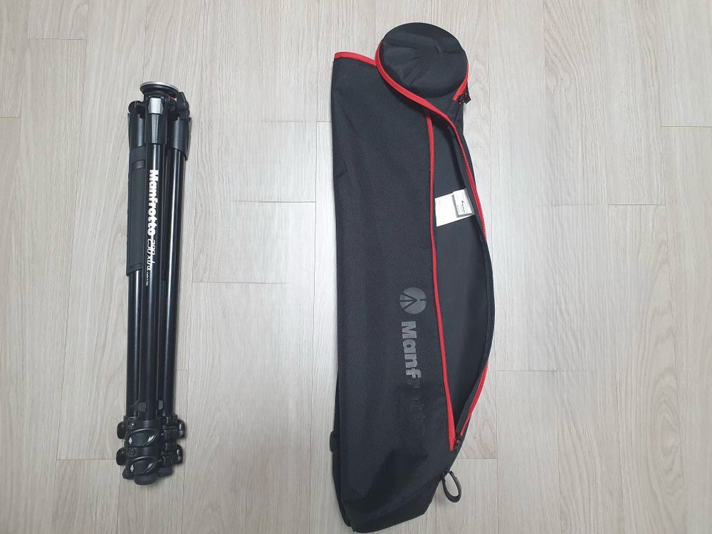 맨프로토 290 Xtra 삼각대입니다 사진에서 보이는 것처럼 삼각대 본체와 수납 가방이 함께 있습니다 삼각대 다리 지름은 25.8mm이며, 무게는 1810g으로 측정되었습니다 사용감 적은 편이고, 이상 없습니다 안정적인 촬영을 도와주는 제품입니다
