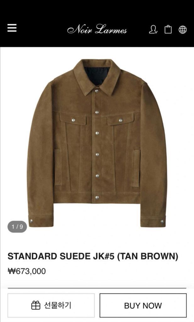 개인정보(거래정보)를 주고받는 행위는 사기에 노출될 수 있으므로 즉시 중고나라로 신고해 주세요느와르 라르메스 스웨이드 자켓 탄브라운 50사이즈 현재 공홈 673000원에 판매하는 제품입니다 택도 안 땐 새 상품입니다