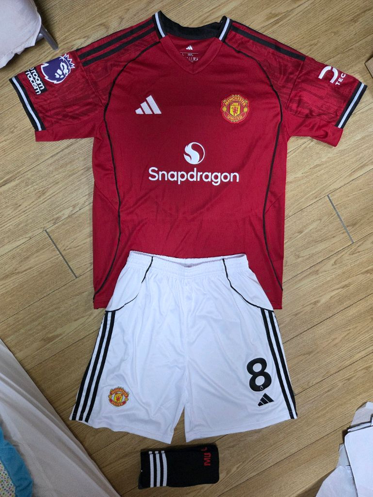 25-26시즌 맨체스터유나이티드 브루노페르난데스 축구 유니폼 축구복 상하의세트 새상품 판매합니다. (해외에서 생산 구매한 oem상품입니다.) 반팔+반바지+양말로 구성되어 있습니다. (프리미어리그 패치도 부착되어 있습니다.) 사이즈는 105(L) 입니다.(국내 정사이즈 기준) 택배거래시, 택배비 4천원 추가됩니다.