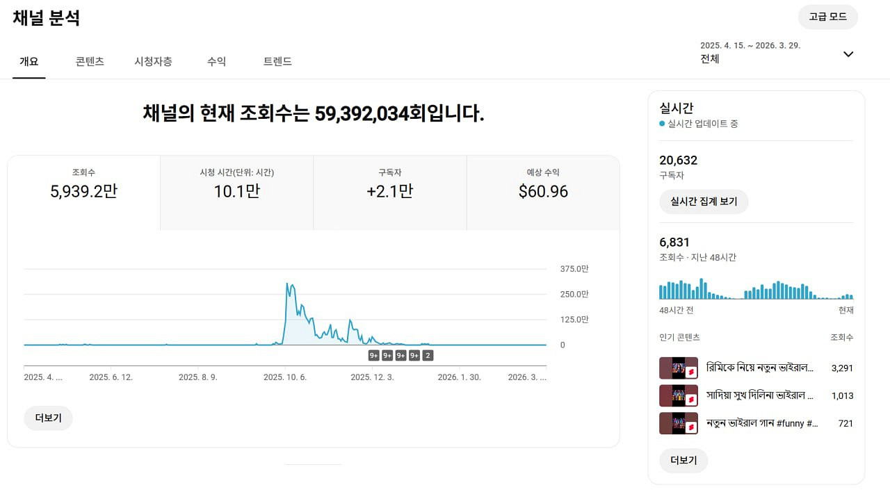 개인정보(거래정보)를 주고받는 행위는 사기에 노출될 수 있으므로 즉시 중고나라로 신고해 주세요- 주의 및 경고 없음 - 채널 완전히 양도 후 입금 가능 - 해외 시청자층 채널 - 고급 인증 채널 - 세금계산서 가능 - 수익 창출 활성화 - 자세한 채널 정보는 문의 바랍니다.
