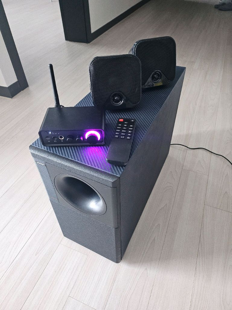 BOSE ACOUSTIMASS 5 SERIES 2 보스 어쿠스티매스 5 우퍼와 방수 가능 새틀라이트 스피커 앰프는 M19BT - TPA3116D2 로 200와트 리모컨 포함, BT 5.3, AUX, OPTICAL, COAXCIAL 다양한 입력 지원으로 편리합니다 가슴까지 울려주는 깊은 저음이 연결선,스피커 브라켓 같이 드립니다 택배는 안될것 같고 화성 오산 수원 일대 직거래 가능합니다