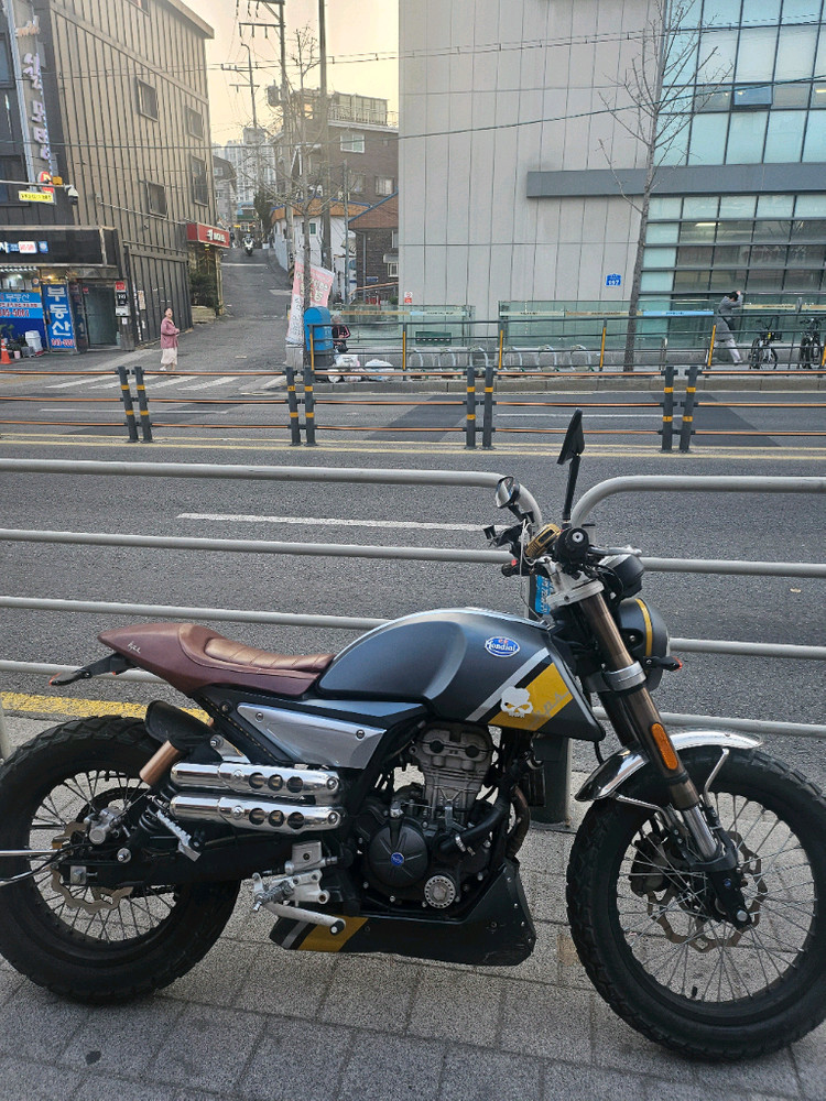 몬디알 힙스터 125 클래식 바이크 판매해요 시트 색상은 브라운이고 헤드라이트 디자인이 독특해요 머플러는 듀얼 머플러가 장착되어 있어요 타이어는 튜브리스 타이어예요 125cc 입문용으로 제격입니다. 폐지 완료 되어 즉시 등록가능하고 125cc 메뉴얼중 디자인 정말 잘나왔습니다. 18년식 9600km 정도 된 바이크 입니다. 라이트 커버 금 살짝 기름통 기스 속도만안됨 전체적으로 이쁘고 크게 지장 없고 주행에 전혀 문제 없습니다. 시동 잘 걸리고 상태 무난하고 괜찮습니다. 판매 금액 135만원 서울 강북삼양사거리역 직거래