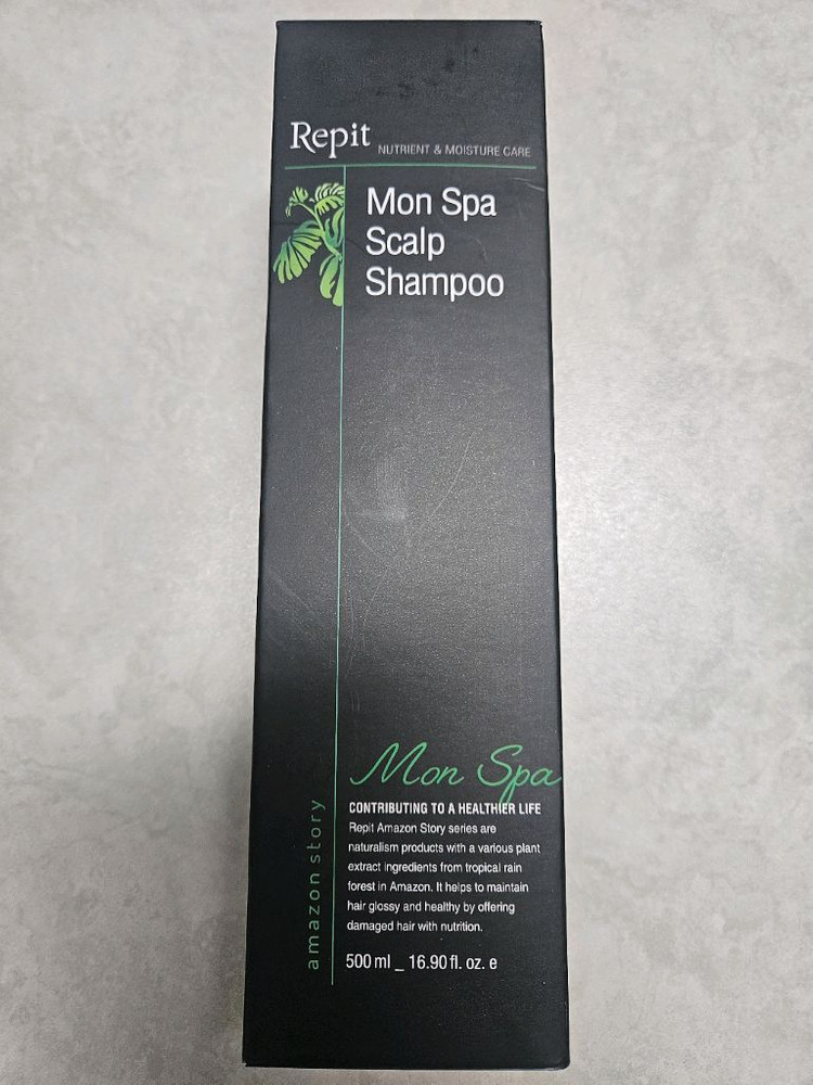Repit 레삐 아마존스토리 몬스파 스칼프 샴푸 500ml 제품입니다 아마존 열대우림의 다양한 식물 추출물이 함유되어 모발과 두피를 건강하게 가꾸는 데 도움을 줍니다 모발에 윤기와 건강함을 선사하며 손상된 모발에 영양을 공급해 줍니다 이 제품은 CGMP 적합 업체에서 제조되었습니다 유통기한은 2027년 11월 07일까지입니다