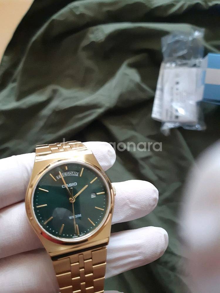 안녕하세요. 카시오 mtp b146g 팝니다. 택포가입니다. 스펙- 요일,일 디스플레이, 스댕브슬, 금장 크롬도금레진케이스, 50미터 방수, 그린 썬레이다이얼, 금색인덱스 몇번 착용해서 브슬 연결부분에 사용흔적 조금 있는거 빼고 나머지 기스없는 새상품급입니다. 직거래지역은 광주광역시입니다. 택배거래시 노리턴 환불불가 조건하에 거래합니다.